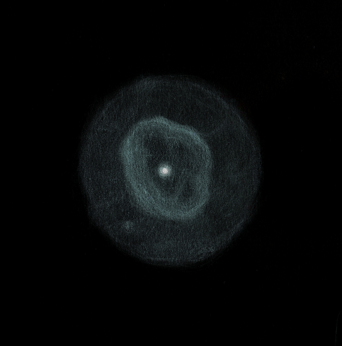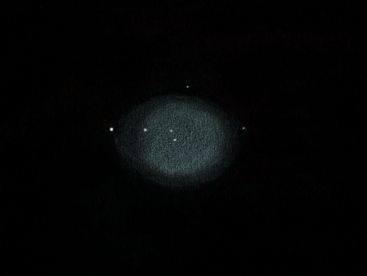 Le 1er mai 2013 dans le T1m de Stellarzac par conditions de transparence et de seeing excellentes. La couleur cyan était frappante. Grossissements 460X et 600X. Sans filtre. |